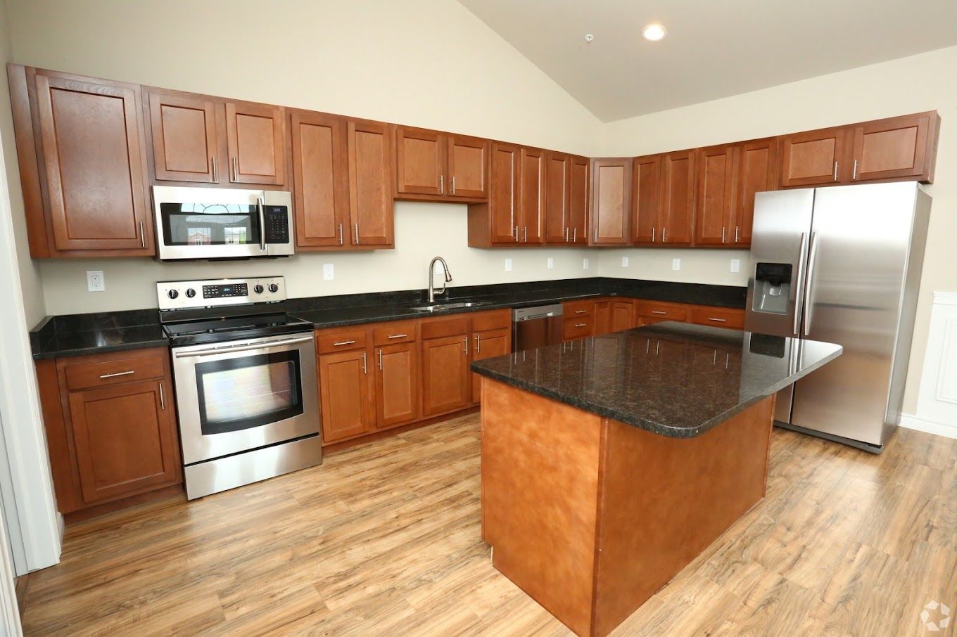 In-unit washer & dryer, central A/C & heat, stainless steel appliances, granite countertops, kitchen islands (select units), hardwood floors, walk-in closets, en-suite bathrooms, vaulted ceilings, crown molding, private entry, patios/balconies, attached garages (select units), and spacious open floor plans with natural light.